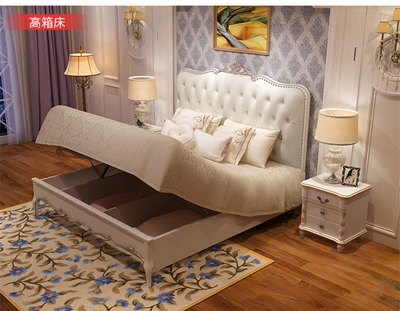 Đèn ngủ gỗ rắn kiểu Mỹ nội thất phòng ngủ sang trọng hậu hiện đại tân cổ điển da nghệ thuật kéo nút giường đôi công chúa có thể được tùy chỉnh - Giường
