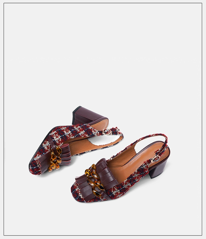 Dép Baotou nữ mùa hè 2020 mới Pháp retro tua giày nữ cao gót nữ dày gót đơn giày nữ 40 - Sandal