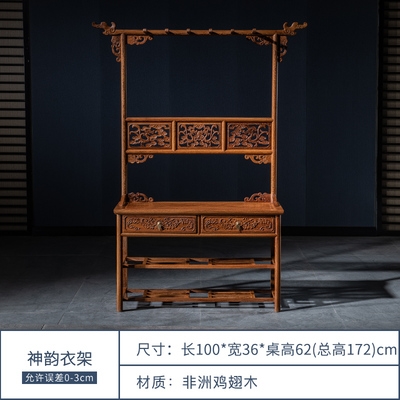 Đồ nội thất bằng gỗ gụ Xianmingyuan chính hãng, móc treo bằng gỗ cánh gà quyến rũ, phòng ngủ bằng gỗ nguyên khối mới trên sàn Trung Quốc lưu trữ quần áo - Kệ