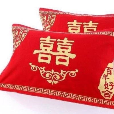 Đơn giản cặp đôi phim hoạt hình đôi khăn thấm mồ hôi không khí thấm mồ hôi ký túc xá đám cưới người lớn viền khăn gối thoáng khí màu đỏ - Khăn gối