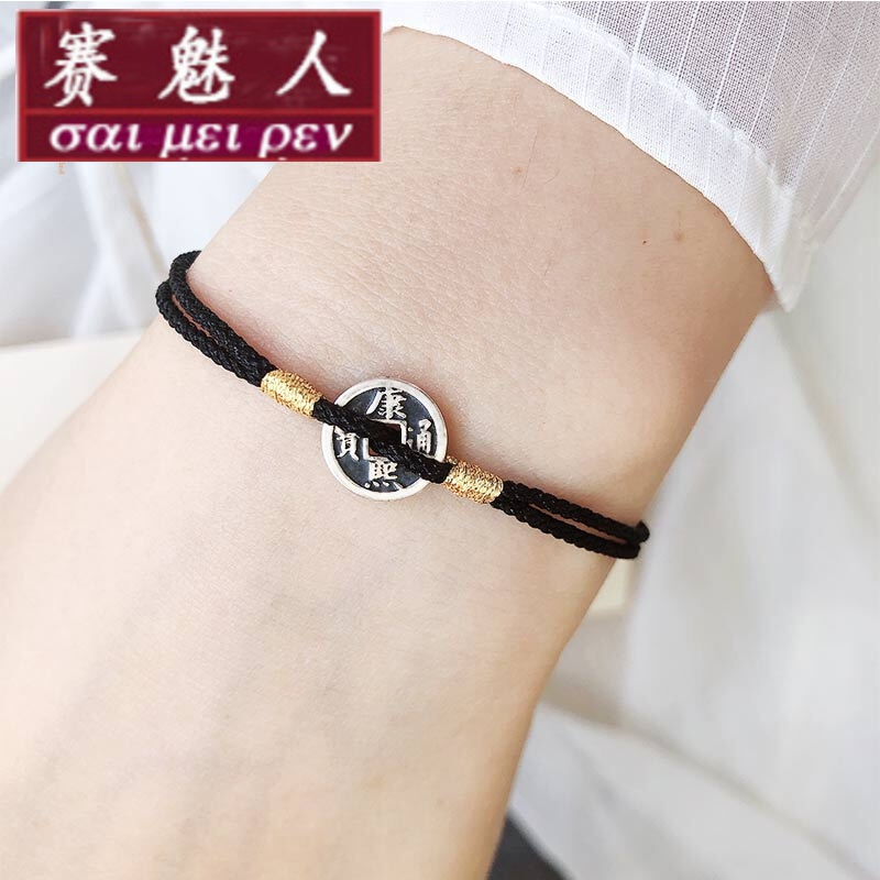 Đồng xu vòng tay dệt cho nam giới năm hoàng đế tiền bảo vệ cơ thể người lớn dây đỏ 925 đồng bạc nữ cặp đôi bạn gái vòng chân ý nghĩa - Vòng chân