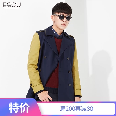 Egou nam mùa thu và mùa đông mới áo gió nam màu sắc giản dị khâu áo khoác cotton mỏng chất lượng Hàn Quốc - Áo gió