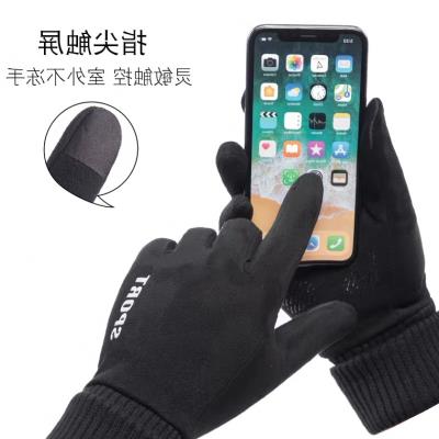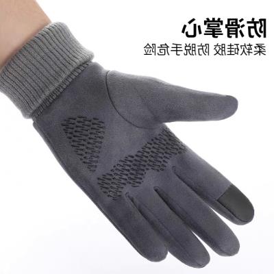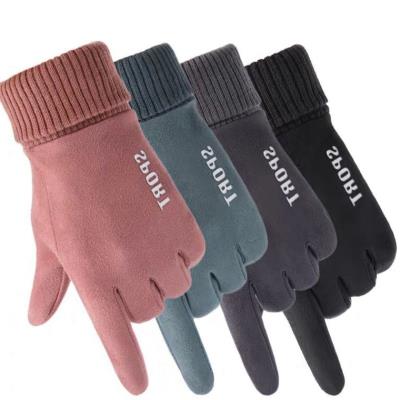 Găng tay da lộn nam mùa thu và mùa đông cưỡi ngoài trời cộng với nhung dày màn hình cảm ứng ấm áp chống trượt thể thao găng tay cotton nữ - Găng tay