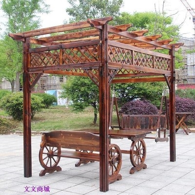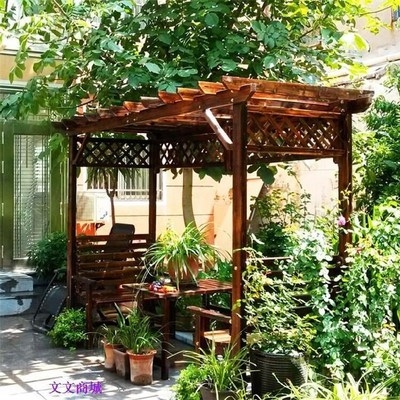 . Gazebo ngoài trời sân trong bằng gỗ rắn biệt thự vườn gia đình chống ăn mòn đồ nội thất bằng gỗ mặt trời đi dạo sân thượng hoa đứng để giải nhiệt - Bàn ghế ngoài trời / sân