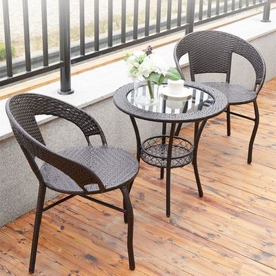 Ghế đan đơn Ba mảnh chống ẩm Bàn cà phê Sân thượng Bàn thư giãn Phòng trà Ban công Bàn ghế nhỏ Bàn ghế mây thật Tiếp khách - Bàn ghế ngoài trời / sân