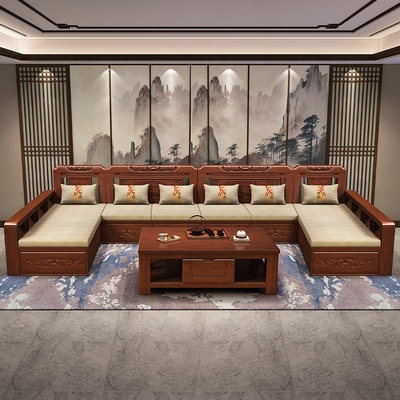 Ghế sofa gỗ rắn mùa đông và mùa hè sử dụng kép hiện đại mới lưu trữ đồ nội thất bằng gỗ của Trung Quốc phòng khách kết hợp thiết lập căn hộ lớn, vừa và nhỏ - Ghế sô pha