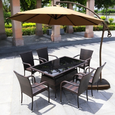 Ghế thư giãn biệt thự. Bàn ghế ngoài trời sang trọng nhẹ nhà trà ghế ban công màu nâu bàn ghế ngoài trời sân vườn bộ bàn ghế l - Bàn ghế ngoài trời / sân