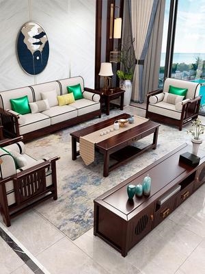 Gia dụng gỗ rắn mới ba người Phong cách Trung Quốc đầy đủ đồ nội thất kết hợp phòng khách hiện đại sáng sủa sang trọng ghế sofa đơn sofa đơn giản gỗ - Ghế sô pha
