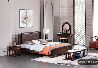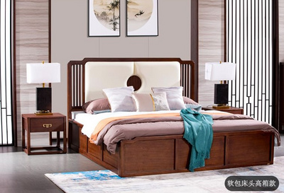 Giường gỗ rắn kiểu Trung Quốc mới giường đôi 1,8 / 1,5 mét nội thất phòng ngủ hiện đại tối giản mềm mại tùy chỉnh tựa lưng - Giường