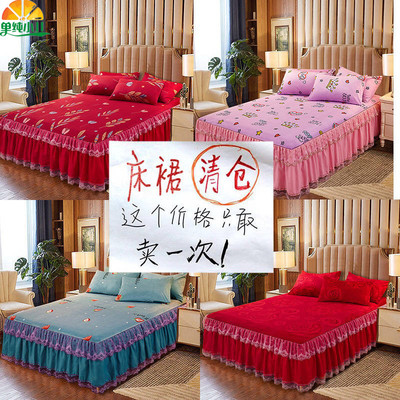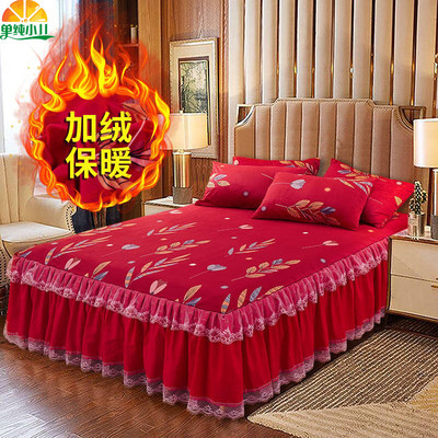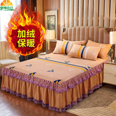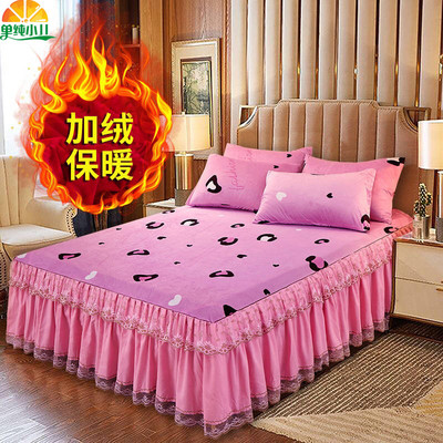 Giường hộ gia đình pha lê lông cừu giường váy dày khăn trải giường lông cừu ấm áp trải giường mùa đông tấm flannel - Váy Petti