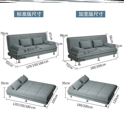 Giường sofa có thể gập lại đa năng đa năng căn hộ nhỏ đơn đôi phòng khách phòng ngủ lười vải đơn giản và sang trọng - Ghế sô pha