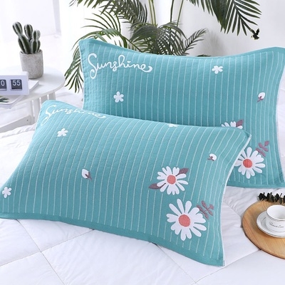 Gối khăn gạc màu vàng và khăn gối cotton một cặp gạc 52 * 78cm chần bông người lớn dải khăn gối sinh viên - Khăn gối