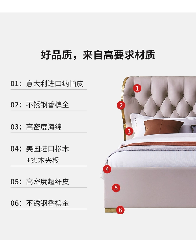 Hậu hiện đại ánh sáng sang trọng giường da chính phòng ngủ giường cưới đôi in lưới màu đỏ giường đơn giản sáng tạo 1,8 mét giường phong cách Hồng Kông - Giường