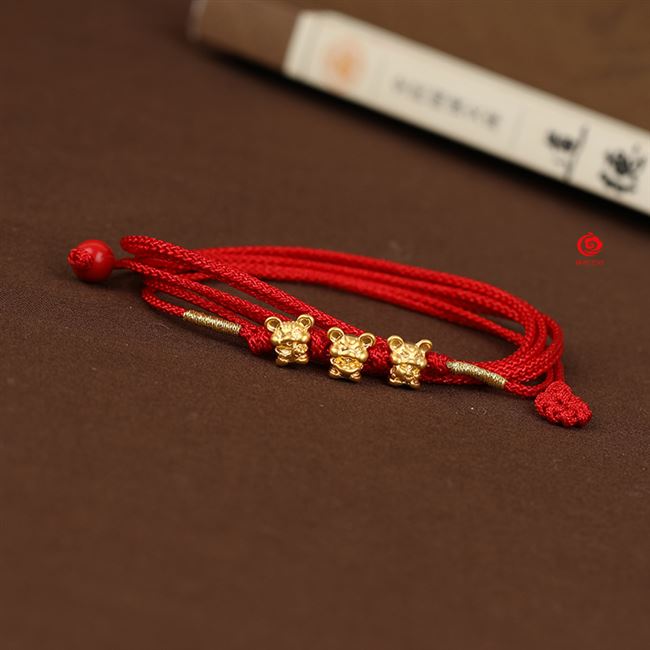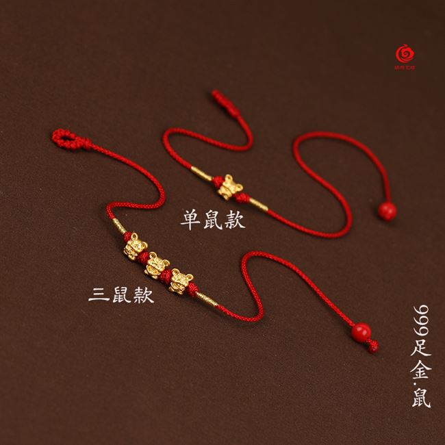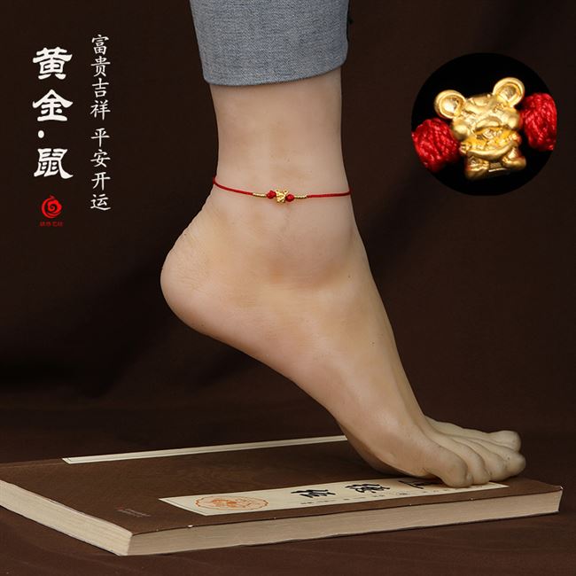 Huy chương 2020 Năm hoàng đạo Chuột vàng Dây đỏ Vòng chân Nữ 999 Chân Chuột vàng May mắn Dây đỏ Linh vật Nam - Vòng chân