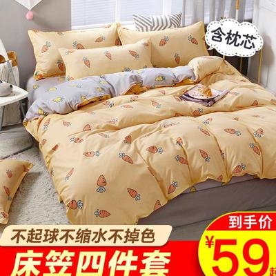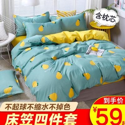 Khăn trải giường loại bốn mảnh phòng ngủ tập thể 1,5 / 1,8m khăn trải giường 1,2m bảo vệ nệm bọc vải bông tinh khiết bộ ba mảnh - Trang bị Covers