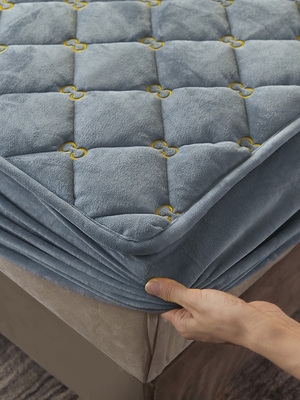 Khăn trải giường nhung thêu khăn trải giường đơn mảnh dày chần bông nệm trải giường mùa đông pha lê nhung chống trượt cố định - Trang bị Covers