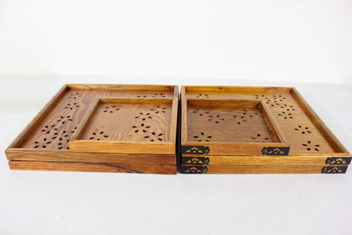 Khay gỗ hoa anh đào trống nhỏ khay vuông lưu trữ khay gỗ cuối khay gỗ quán cà phê nhà hàng khách sạn vật tư - Tấm