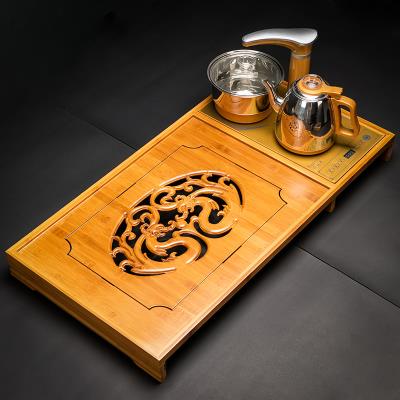 Khay trà tre nhỏ dùng trong gia đình không cần đồ điện, bếp điện tự động biển trà bốn trong một, khung bàn trà rời - Kính
