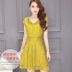 Khí chất mùa hè Hàn Quốc Váy ren lưng cao cổ chữ V Váy chữ A ôm sát Nữ mập Váy suông dài thướt tha - Váy eo cao