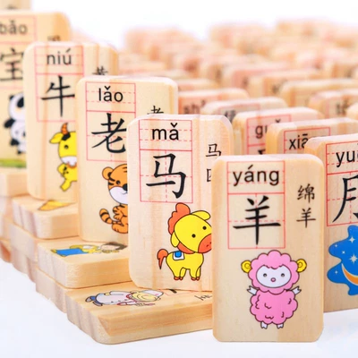 Kiến thức hai mặt khối 1000 từ nhận thức thời tiết bé domino đồ chơi trẻ em bằng gỗ câu đố giáo dục sớm - Khối xây dựng