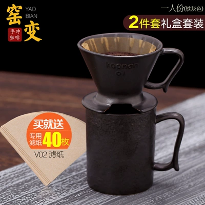 koonan retro tay đấm cà phê nồi đặt bộ lọc cà phê gốm cốc nhỏ giọt hộ gia đình thiết bị cà phê hộp quà tặng - Cà phê