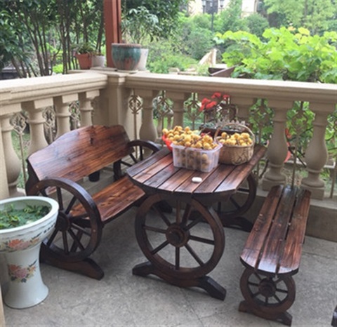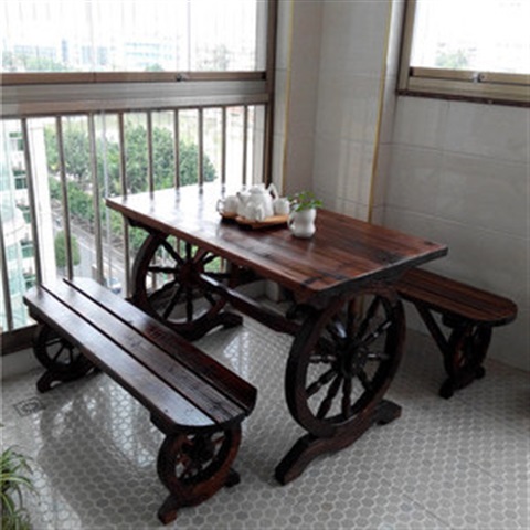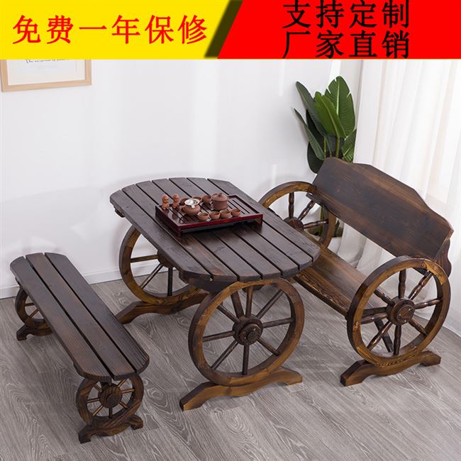 Làm vườn ngoài trời gỗ carbon hóa đồ nội thất gỗ rắn giải trí bàn ghế trong vườn ghế đẩu hình bầu dục bánh xe lửa than bàn ghế gỗ - Bàn ghế ngoài trời / sân