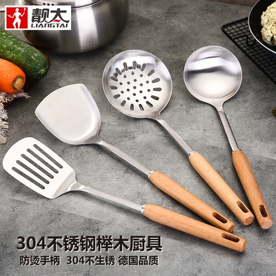 Liangtai 304 inox thìa thìa súp colander hộ gia đình dụng cụ nhà bếp bằng gỗ sồi xử lý nấu ăn xẻng nấu ăn xẻng rau Đức - Phòng bếp