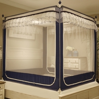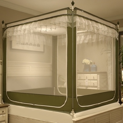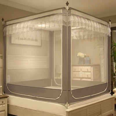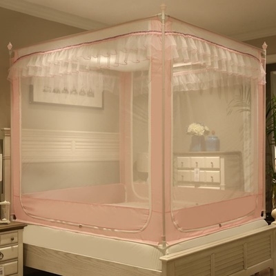 Loại dây kéo bé gái 5 loại màn ngủ có dây kéo loại cài đặt vào tường không có áp lực gia đình có dây kéo loại giường lưới chống muỗi 1 giường vuông trên - Lưới chống muỗi