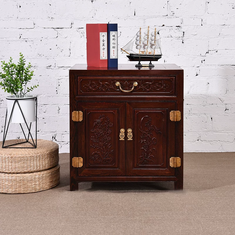 Mahogany đầu giường đầy đủ cánh gà tủ gỗ lưu trữ giá rắn gỗ thấp tủ Trung Quốc log cổ phòng ngủ bên tủ - Buồng