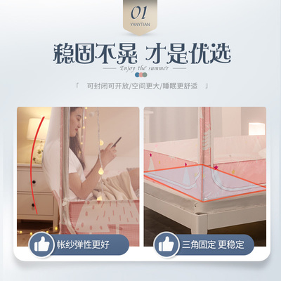 Màn chống muỗi cho trẻ em công chúa màu hồng ba cửa ngồi giường hỗ trợ không đáy lưng đáy đầy đủ đáy 1,8m Giường 2,0x2,2m - Lưới chống muỗi