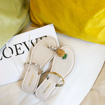 Mang dép ngọc trai dứa nữ 2019 mới lưới đỏ gót giữa dép đi biển và dép mùa hè cổ tích phong cách sandal ngón chân - Dép