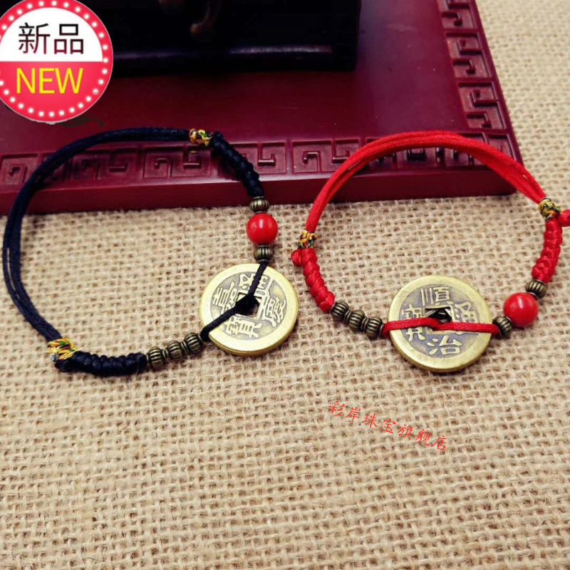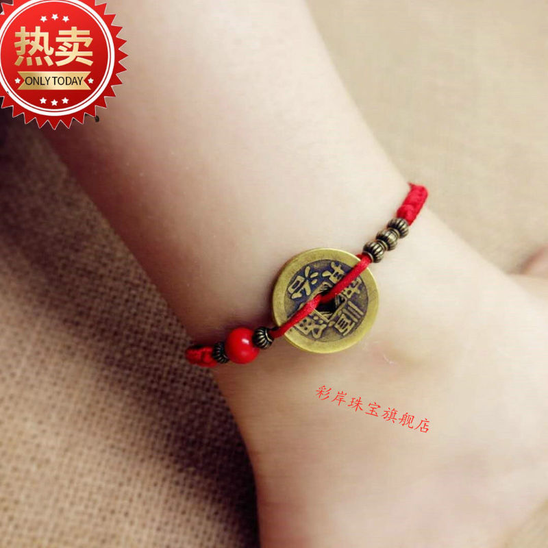 May mắn chuyển giao chống phản diện kim cương nút đồng nguyên chất năm hoàng đế đồng xu đồng xu đầy màu sắc dây thừng màu đỏ vòng tay vòng đeo chân màu đỏ năm - Vòng chân