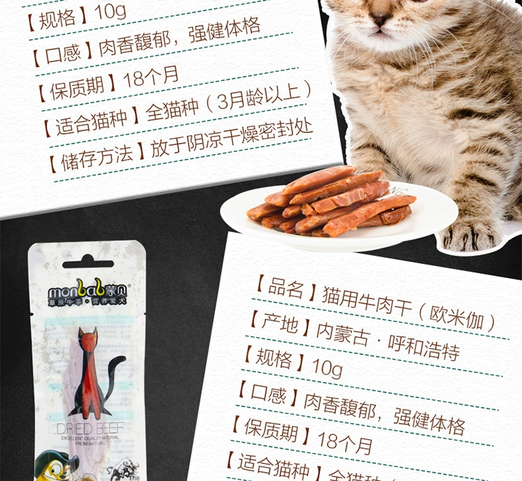 Mèo tham nhũng-Nội Mông Mèo Mengbei với dải thịt bò mèo dải mèo thịt mèo ăn vặt 10g đồ ăn nhẹ - Đồ ăn nhẹ cho mèo