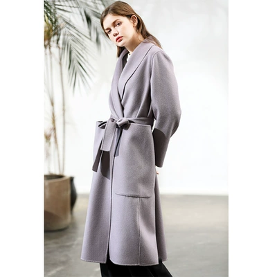 Miccbeirn Mid-length Slim Hàn Quốc Ren-up Pure Color Áo dài tay đi lại Áo khoác len nữ - Trung bình và dài Coat