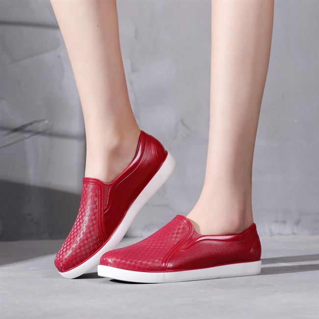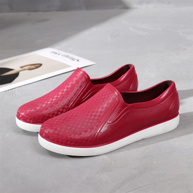 Miệng nông ủng đi mưa phụ nữ làm việc chống trượt bên ngoài mặc thời trang giày chống thấm nước cắt thấp bảo hiểm lao động giày cao su căng tin nhà bếp overshoes ống thấp - Rainshoes