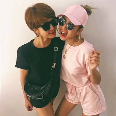 ? MimmonShop mùa hè 2021 sản phẩm mới cá tính uốn lượn thời trang bộ đồ thể thao nữ quần đồng màu - Bộ đồ