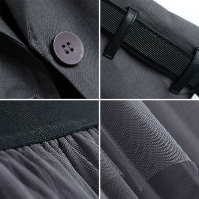 MIUCO thắt lưng nhỏ phù hợp với ve áo khoác + váy lưới bất thường phù hợp với phụ nữ mùa thu 2021 k - Bộ đồ