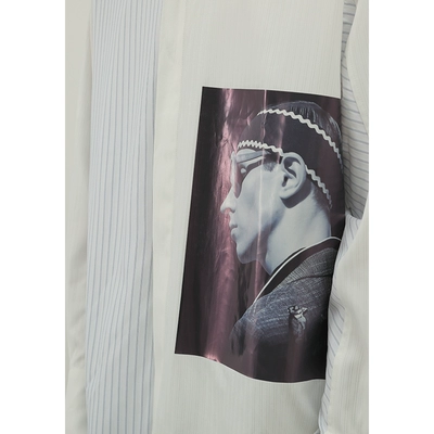 MIXSEVEN chân dung gốc in sọc xanh nhạt khâu áo sơ mi trắng dài tay Qi Wei Baike cùng kiểu - Áo