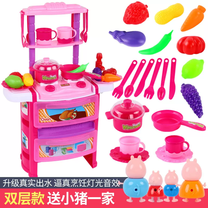 Mô phỏng nhà bếp chơi nhà đặt trẻ em bé Xiaoling đồ dùng nhà bếp nấu ăn nấu đồ chơi trang heo - Phòng bếp