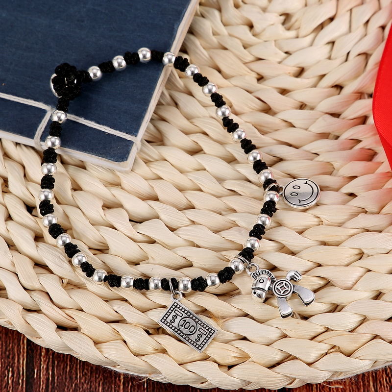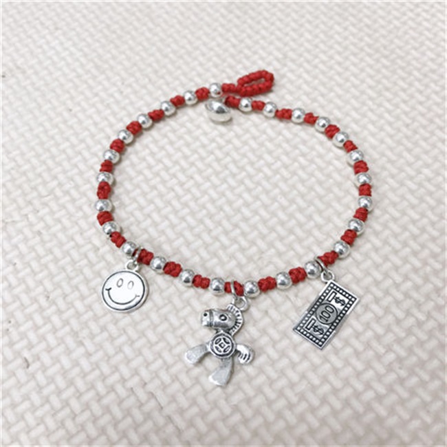 Mới bện bạc Tây Tạng vòng tay voi bạc chuỗi đỏ mèo ngay lập tức giàu có mặt dây chuyền vòng chân cặp đôi thời trang khóa dây đỏ - Vòng chân