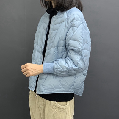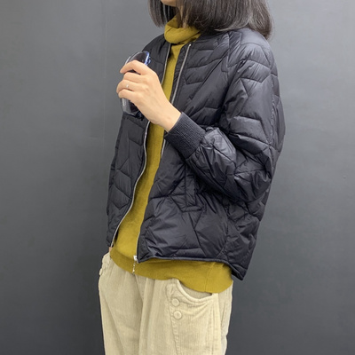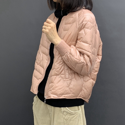 Mùa đông 2019 mới của phụ nữ Hàn Quốc lỏng lẻo và mỏng cổ tròn văn học nhẹ xuống áo khoác vịt xuống áo khoác nữ - Xuống áo khoác