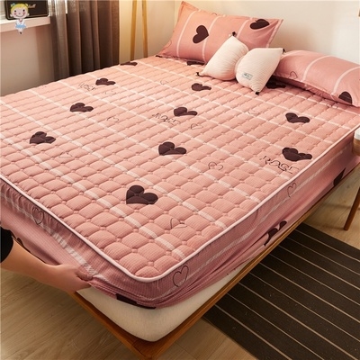 Mùa đông bông trải giường váy trải giường không trượt ga trải giường dày dặn sáu mặt cố định bằng vải nỉ chải bảo vệ khăn trải giường - Trang bị Covers