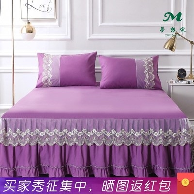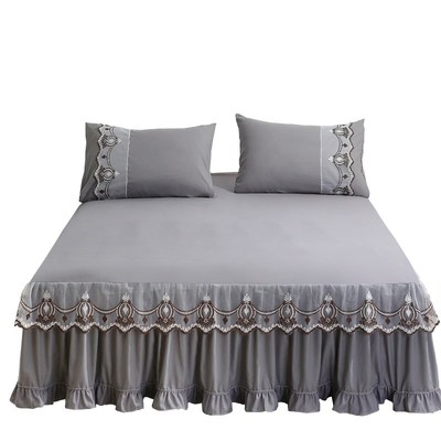Mùa hè màu đặc biệt màu ren giường trải giường kiểu khăn trải giường đơn đôi ren chống trượt 1.8m2.0m ​​ga trải giường che phủ bảo vệ chống bụi - Váy Petti