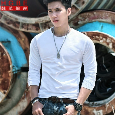 Mùa thu bó sát áo thun dài tay nam màu rắn cotton tròn cổ mỏng thân áo mỏng thể thao hàng đầu chạy đáy áo - Áo phông dài