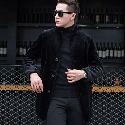 Mùa thu / mùa đông lông cừu xén áo khoác nam giữa chiều dài Hàn Quốc đứng lên cổ áo lông thú da nam - Áo khoác đôi