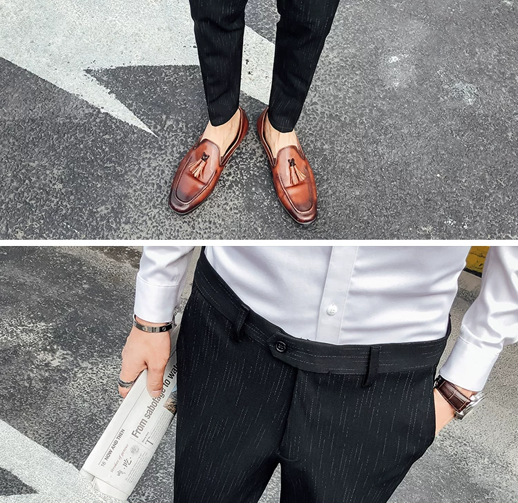 Mùa thu nam quần âu kinh doanh quần sọc thanh niên chân mỏng quần dày Anh phù hợp với quần quần - Quần