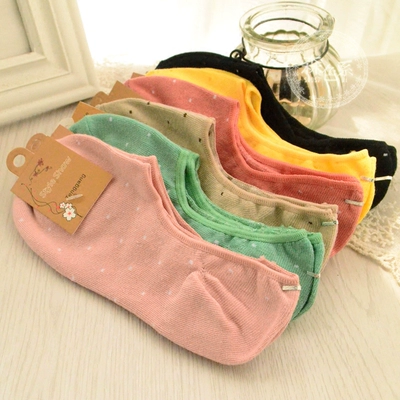 Mùa thu sản phẩm mới chấm nhỏ phụ nữ viền nông miệng bông vớ thuyền màu kẹo hoang dã màu bông vô hình phụ nữ vớ - Bít tất nữ