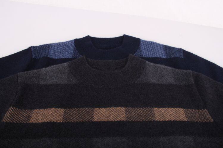 Mùa thu và mùa đông áo len cashmere mới nam nửa cao cổ tròn áo thun kẻ sọc áo len áo len kích thước lớn nam lỏng áo dày - Kéo qua