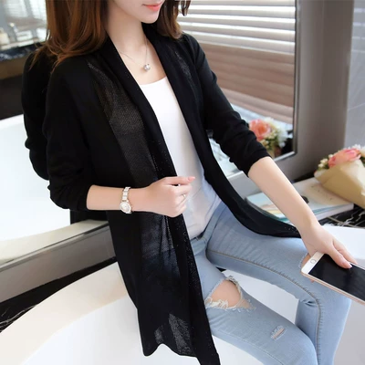 Mùa xuân và hè 2020 Áo sơ mi mới có máy lạnh Áo len nữ dài giữa phiên bản Hàn Quốc áo dài rộng tay áo mỏng - Cardigan