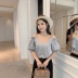 Mùa xuân và mùa thu gợi cảm cổ chữ V một vai lá sen tay áo yếm voan eo cao vòng một chín điểm quần ống rộng thời trang phù hợp với - Bộ đồ